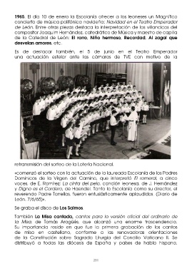 También participa en la misa pontifical oficiada en el paseo de Papalaguinda 1965. El día 10 de enero la Escolanía ofrecer a los leoneses un Magnífico