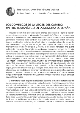 académica y política me esforcé en tratar de apreciar y enseñar el valor de educación que fue la “Virgen del Camino”, pero desearíamos que sirviera