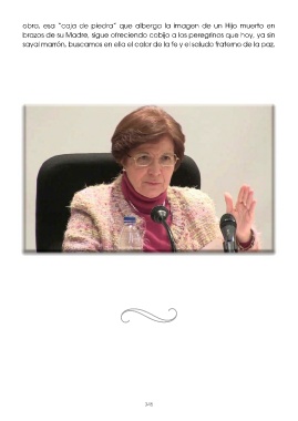 juntas supuestamente sujetando una paloma, con lo que quería decir que brazos de su Madre, sigue ofreciendo cobijo a los peregrinos que hoy, ya sin