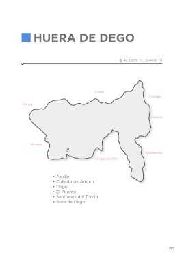 HUERA DE DEGO 43.33279 °N, -5.14076 °O Piloña Colunga Ponga Caravia Amieva Ribadesella Cangas de Onís • Aballe • Collado de Andrin • Dego • El Puente • Santianes del Tornin • Soto de Dego 227